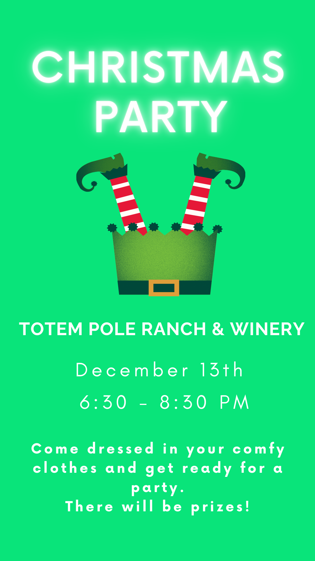 Totem Pole Ranch & Winery - Carlisle Tasting Room 940 Cranes Gap Road, Carlisle, PA, United StatesGrab your friends and your favorite coziest Christmas clothes or PJs! Join us for some Christmas fun and cheer!! Naomie Celestin will be entertaining us some Christmas classics, we will have fun games, and yummy specials.
